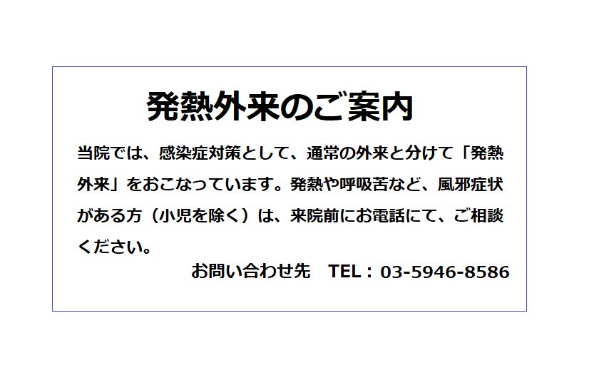 ・診療状況により、発熱外来を休診させていただくことがございます。